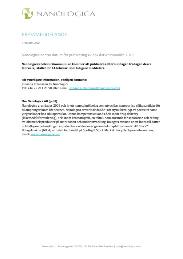 Tel: +46 72 211 21 90 eller e-mail: johanna.johansson@nanologica.com
