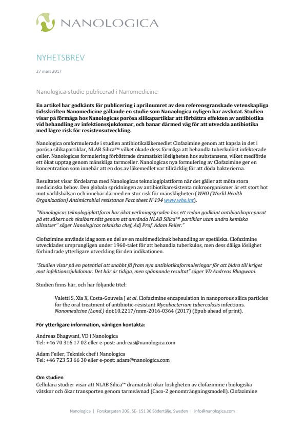 Tel: +46 723 53 66 30 eller e-post: adam@nanologica.com